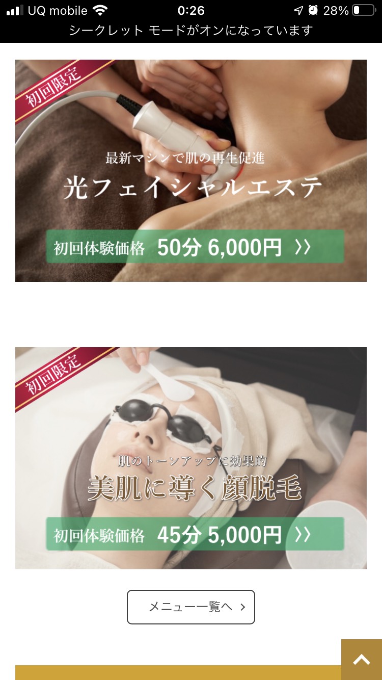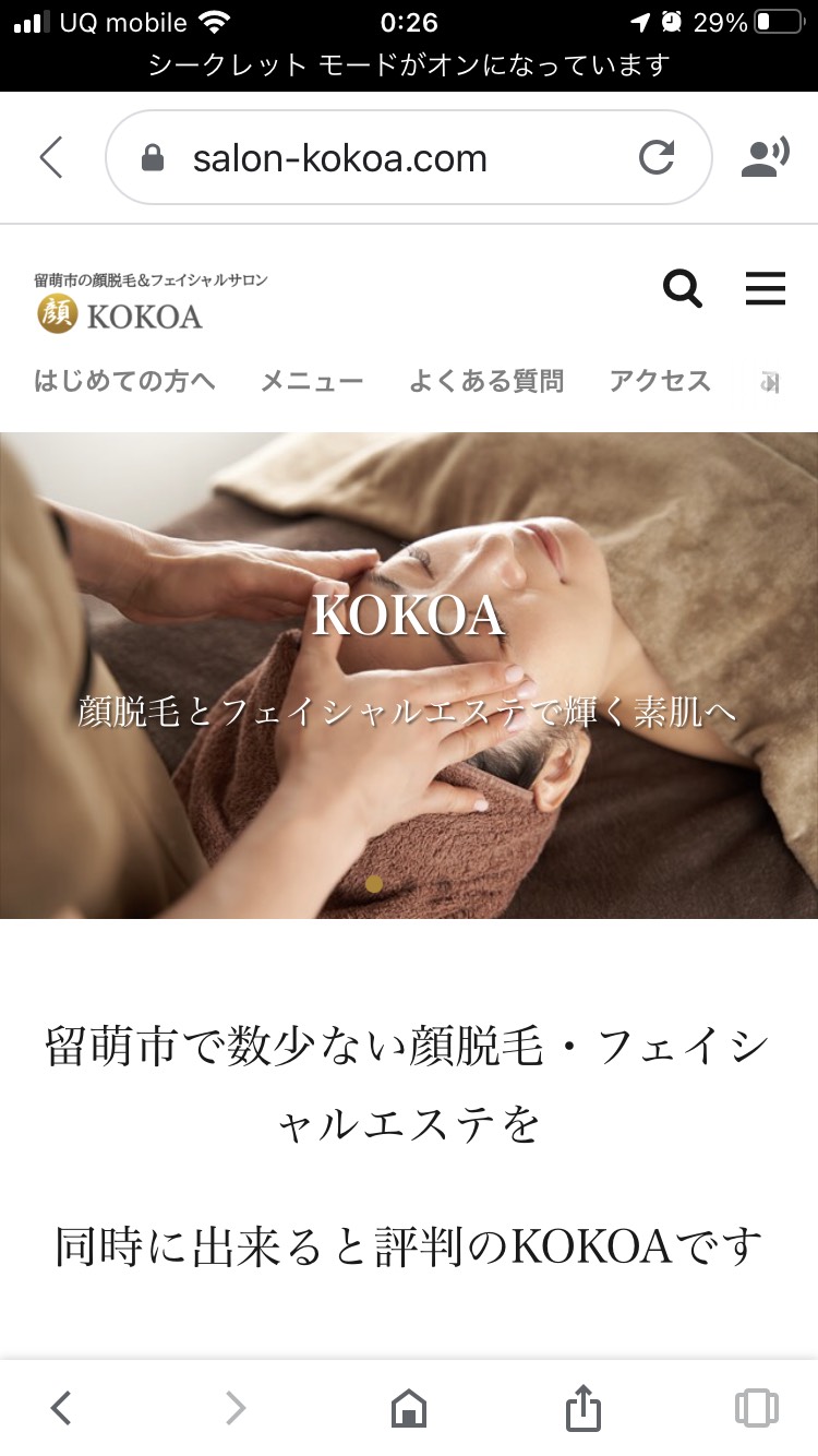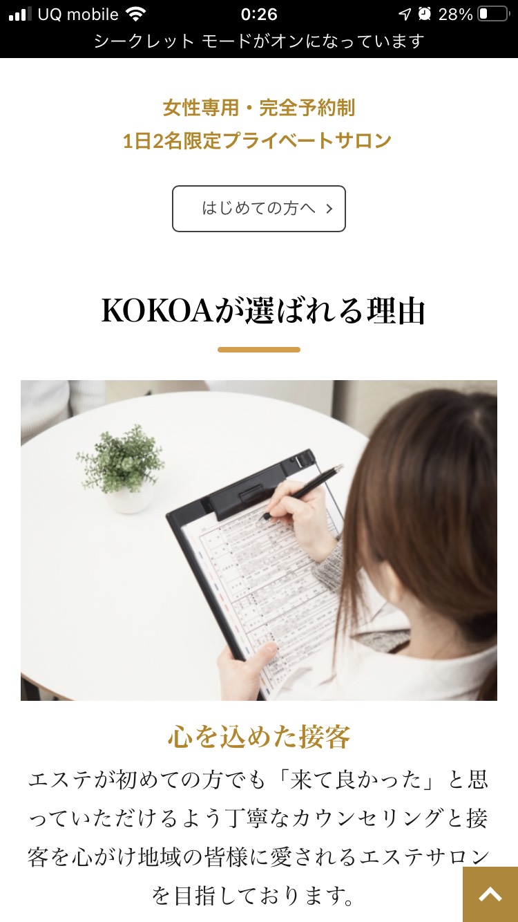 実際にイメージが湧きずらいと思いますのでスタートパッケージで依頼頂いたエステサロン「KOKOA」様のサイトをご覧ください。